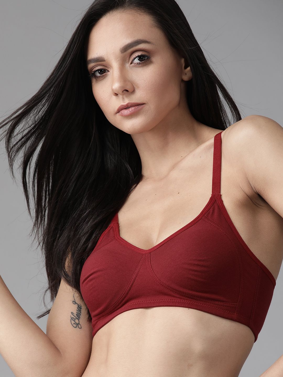 Maroon Medium-Coverage Cotton Bra for Women – Non-Padded | Non-Wired