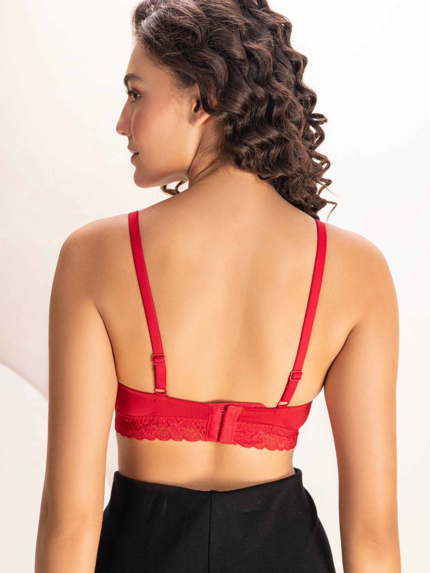 Stay comfy and cute with this padded, non-wired longline bra. The full-cup shape offers secure coverage with lace detailing at the waist, while the self design fabric adds a playful vibe. A sweet center bow brings in a touch of charm.straight back with adjustable straps.Finished with a double hook-and-eye closure for a snug, easy fit.