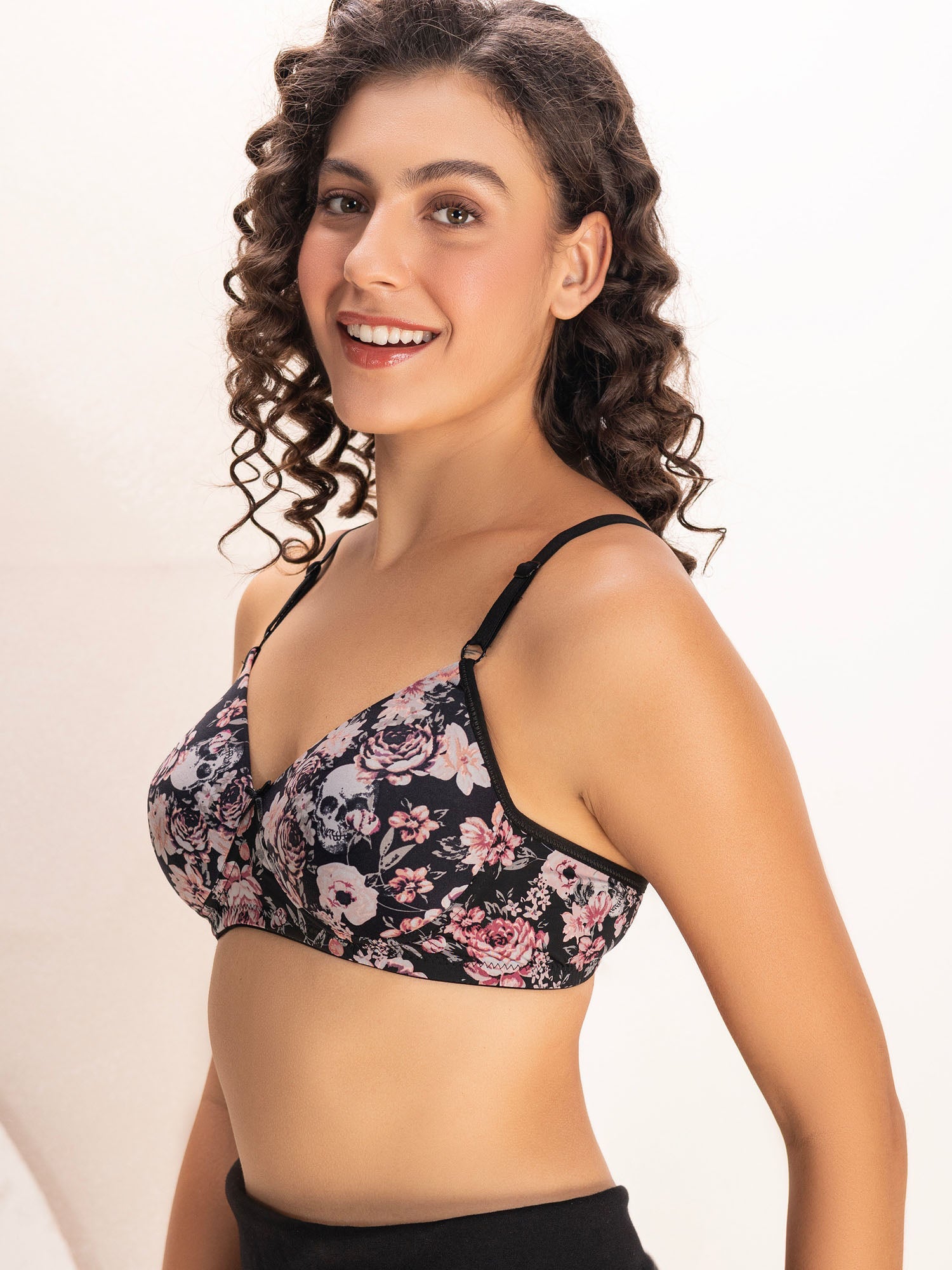 Made from 100% blended fabric, this T-shirt bra offers a full coverage smooth, soft finish ideal for everyday wear. The floral cure printed design adds a fresh, feminine touch, making it stylish yet functional. Designed with multiway attachable straps, it lets you switch between classic, cross-back, halter, or one-shoulder styles for versatile support under any outfit and its comfortable construction makes it a perfect daily essential.