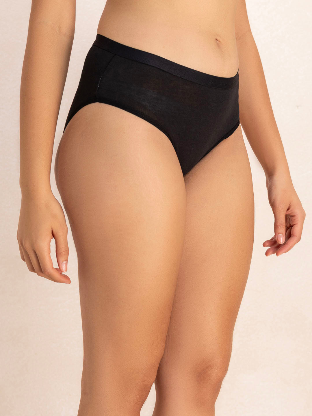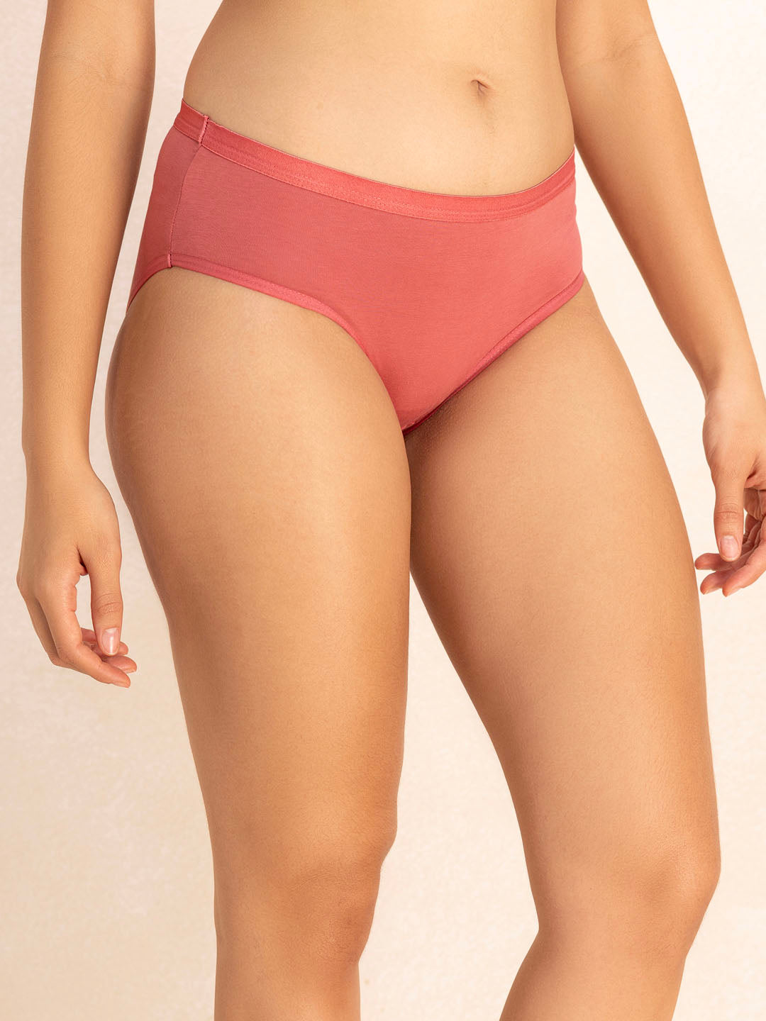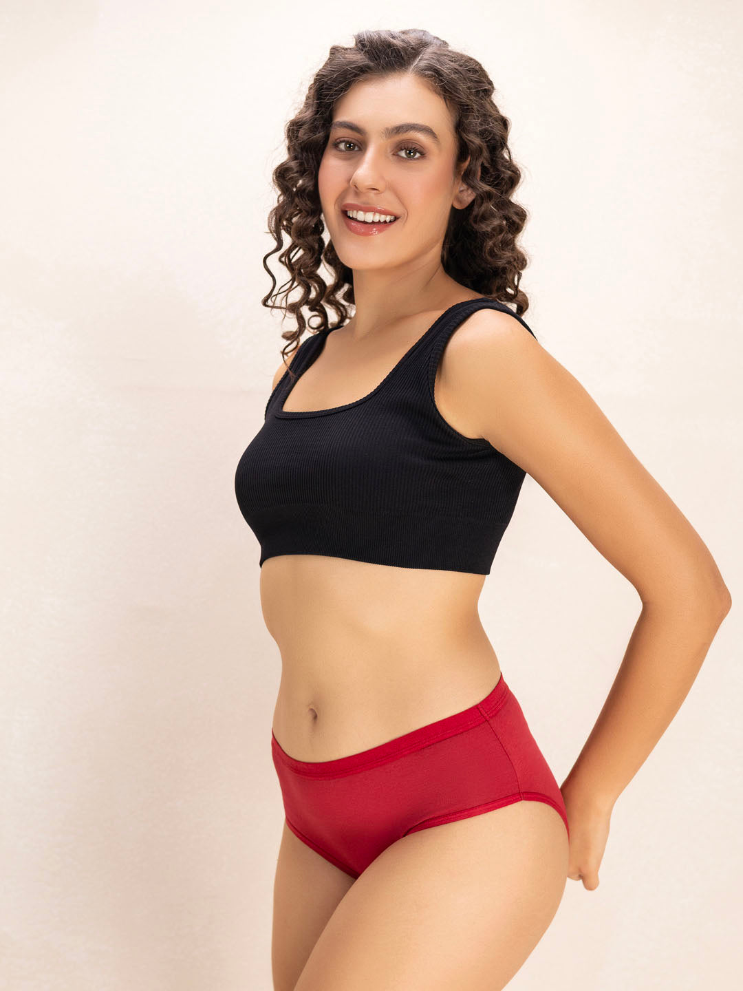 Crafted with soft and breathable cotton-stretch fabric, this pack of 3 mid-rise hipster briefs delivers everyday comfort and smooth coverage. The set includes Pink, Black, and Maroon solid briefs—each designed with an outer elastic waistband for a secure, gentle fit and a double-layered gusset for improved hygiene and all-day freshness. Perfect for daily wear.