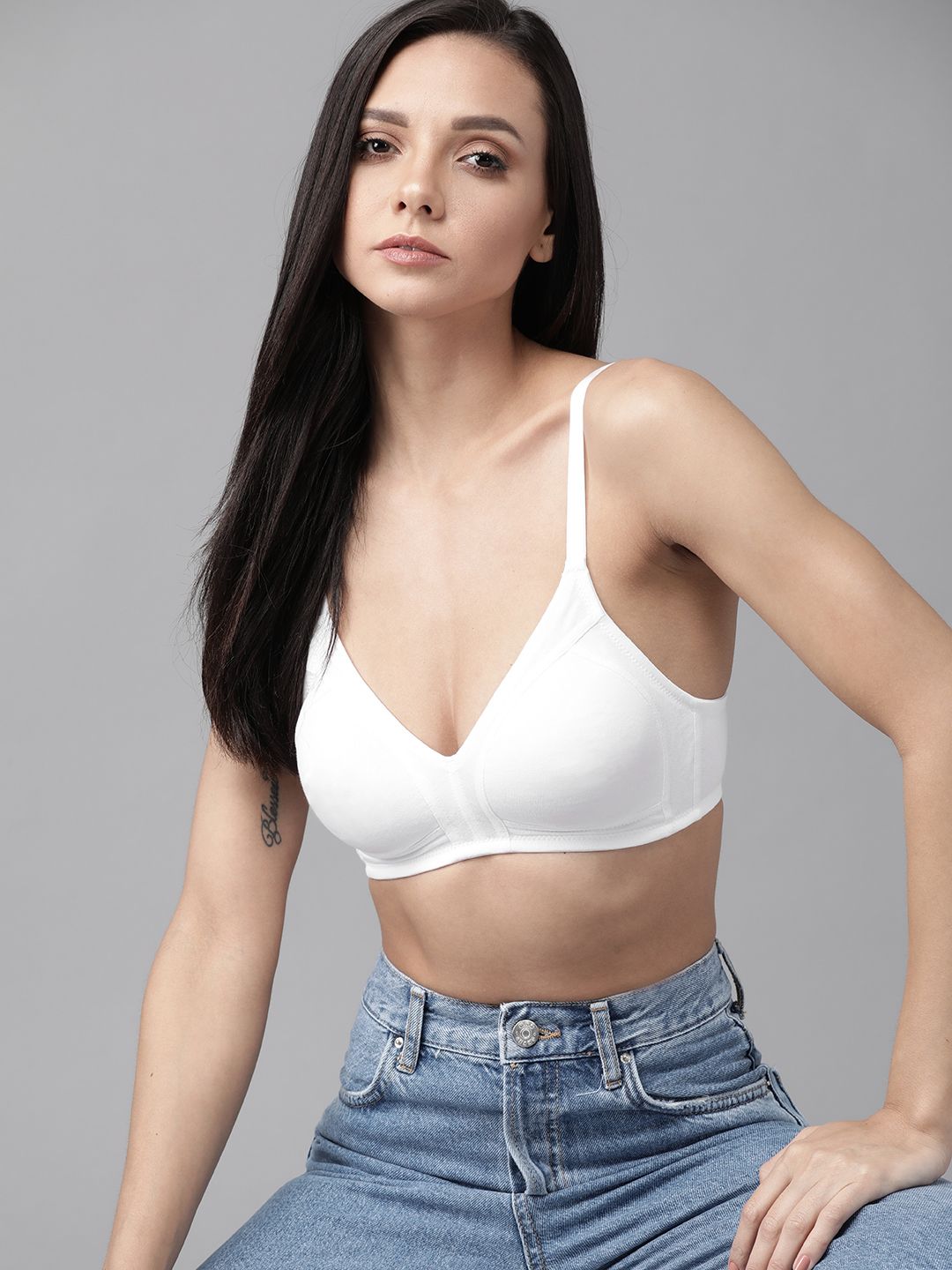 This white full-coverage bra is designed for all-day comfort and daily wear. Made from soft cotton with added stretch, it features seamless, non-padded, and non-wired cups that provide gentle support and a smooth finish under clothes. Key Features: Color: White Coverage: Full coverage for enhanced support Cups: Seamless, non-padded cups for a smooth look Wiring: Non-wired for natural lift and no pressure Fabric Composition: 95% cotton, 5% spandex Straps: Regular, adjustable straps Closure: Hook-and-eye back closure Occasion: Ideal for everyday use Feel: Soft, breathable, and stretchable fit Care Instructions: Machine washable